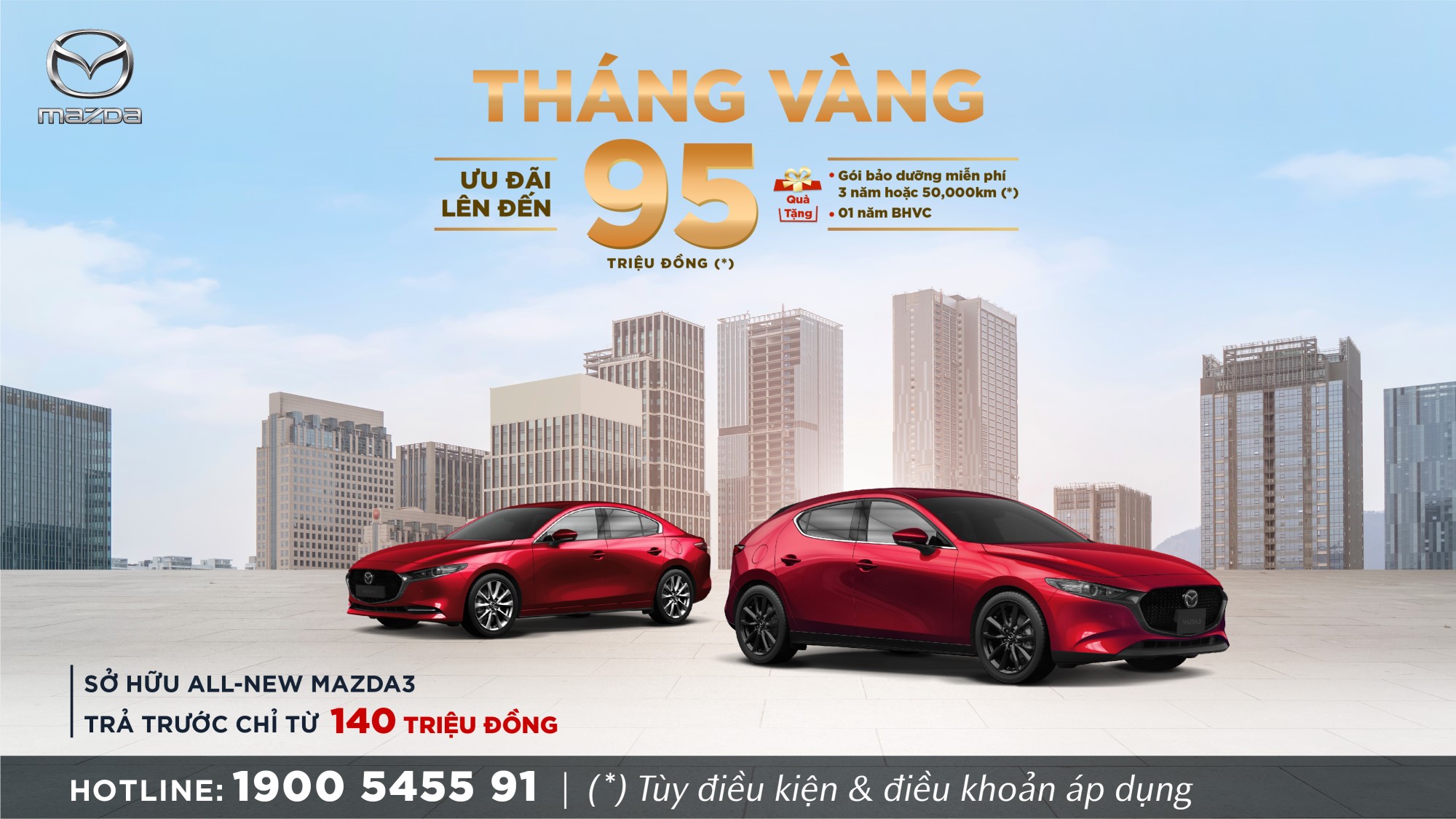All-New Mazda3 Sedan, mức ưu đãi giá cao nhất 75 triệu đồng cho bản 2.0 Signature Premium; 50 triệu đồng bản 2.0 Luxury nội thất màu sáng; 47 triệu đồng, cùng một năm bảo hiểm vật chất trị giá 8 triệu đồng cho bản 1.5 Premium. Một số phiên bản còn lại cũng đang được nhận ưu đãi giá từ 25-37 triệu đồng. Đáng chú ý, khách hàng mua phiên bản đặc biệt 100 năm được tặng gói bảo dưỡng miễn phí 3 năm hoặc 50.000 km.